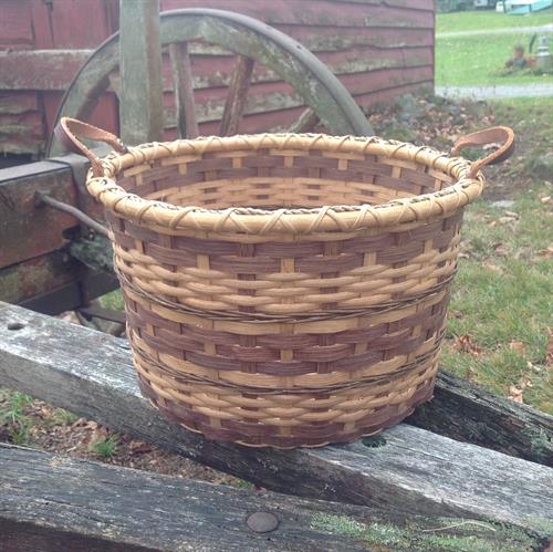 This is a great class for a first-time weaver, as well as for those who would like to learn some new weave patterns to create a unique piece. Techniques discussed will include arrow weave, four-rod wale, and twill, as well as using color to create pattern. Students will begin by weaving a double-bottomed base. As they weave up the sides with the stop-start method, students may then choose to incorporate a variety of color and pattern which interests them. The basket is finished with hand-carved bushel-basket handles. With a double-bottomed base, this is a very sturdy and functional basket, as well as uniquely yours. Dimensions approx. 10"diameter, 8"high.