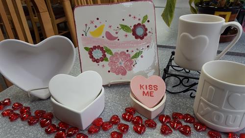 Have a special someone in your life this Valentine's Day? We will be open late the first Friday of February to help you out. Come on in between 4-9pm, paint a heart shaped item and get a free studio fee! Create a unique and super original gift for the one you love this year. Call to reserve your paintbrush, or walk right in!